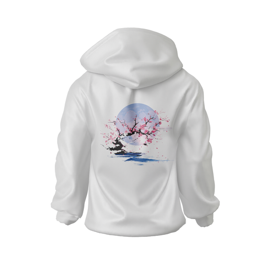 Yugure Classic Sakura Moon™ French Terry Cotton Hoodie White