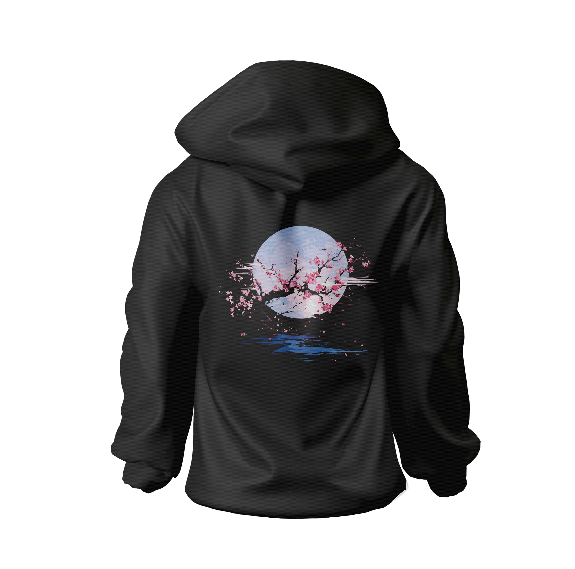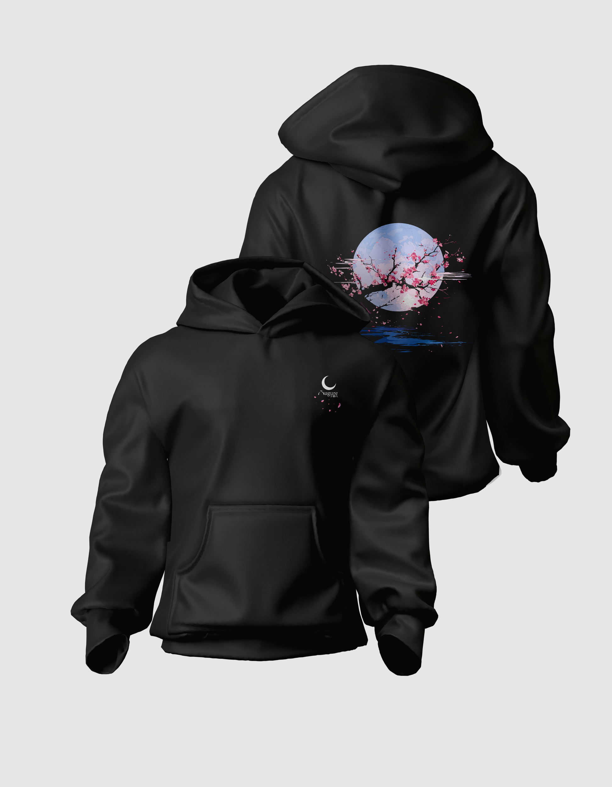 Yugure Classic Sakura Moon™ French Terry Cotton Hoodie Black