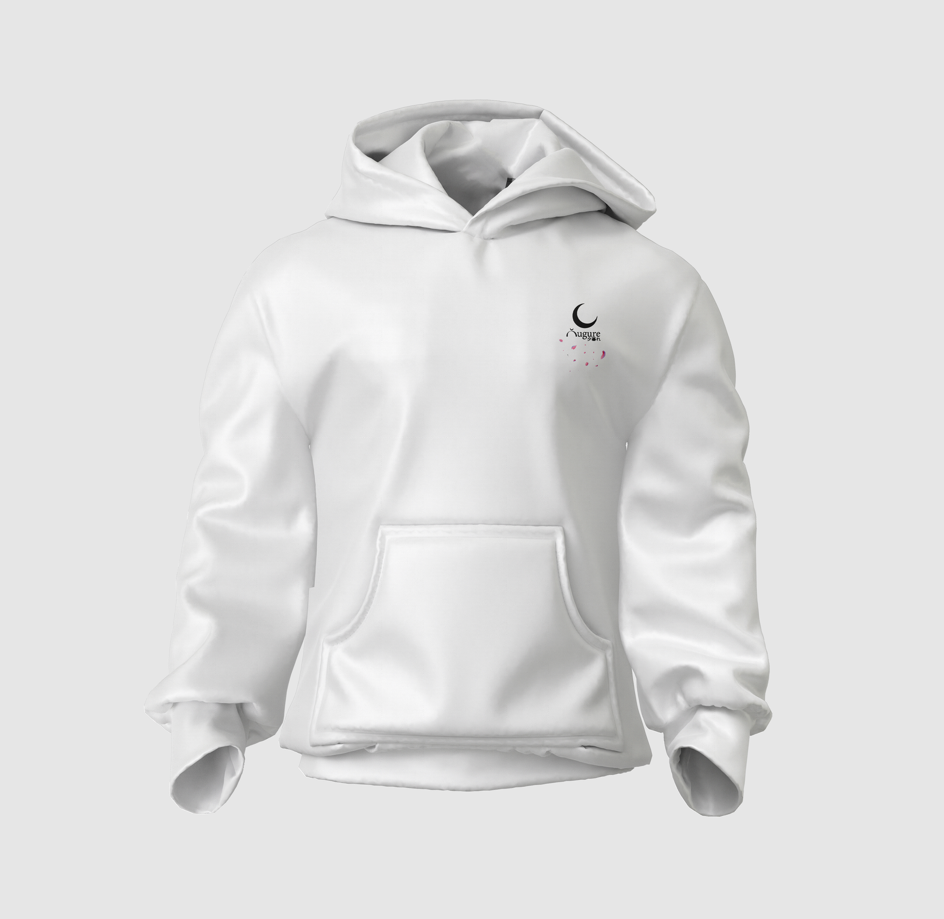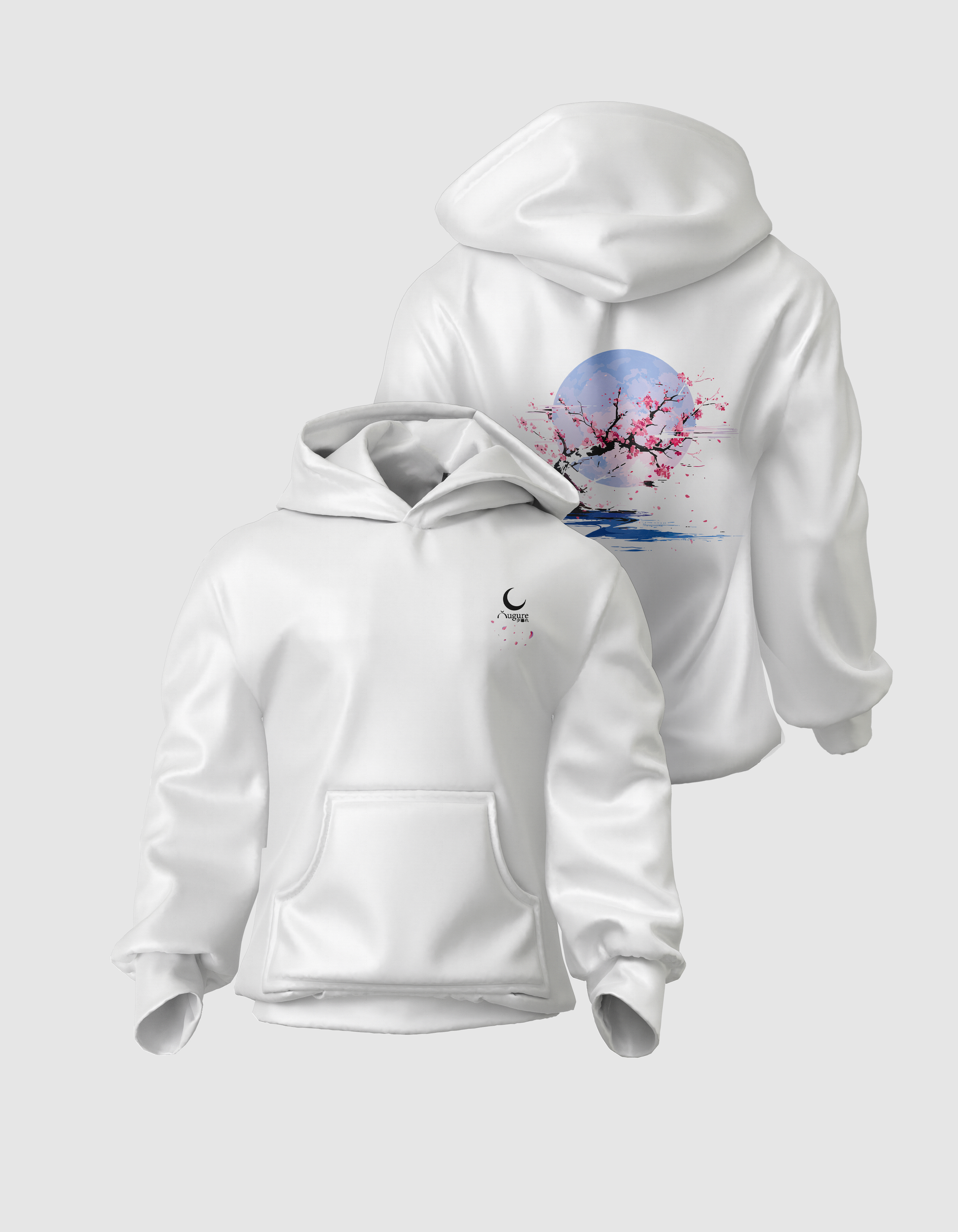 Yugure Classic Sakura Moon™ French Terry Cotton Hoodie White